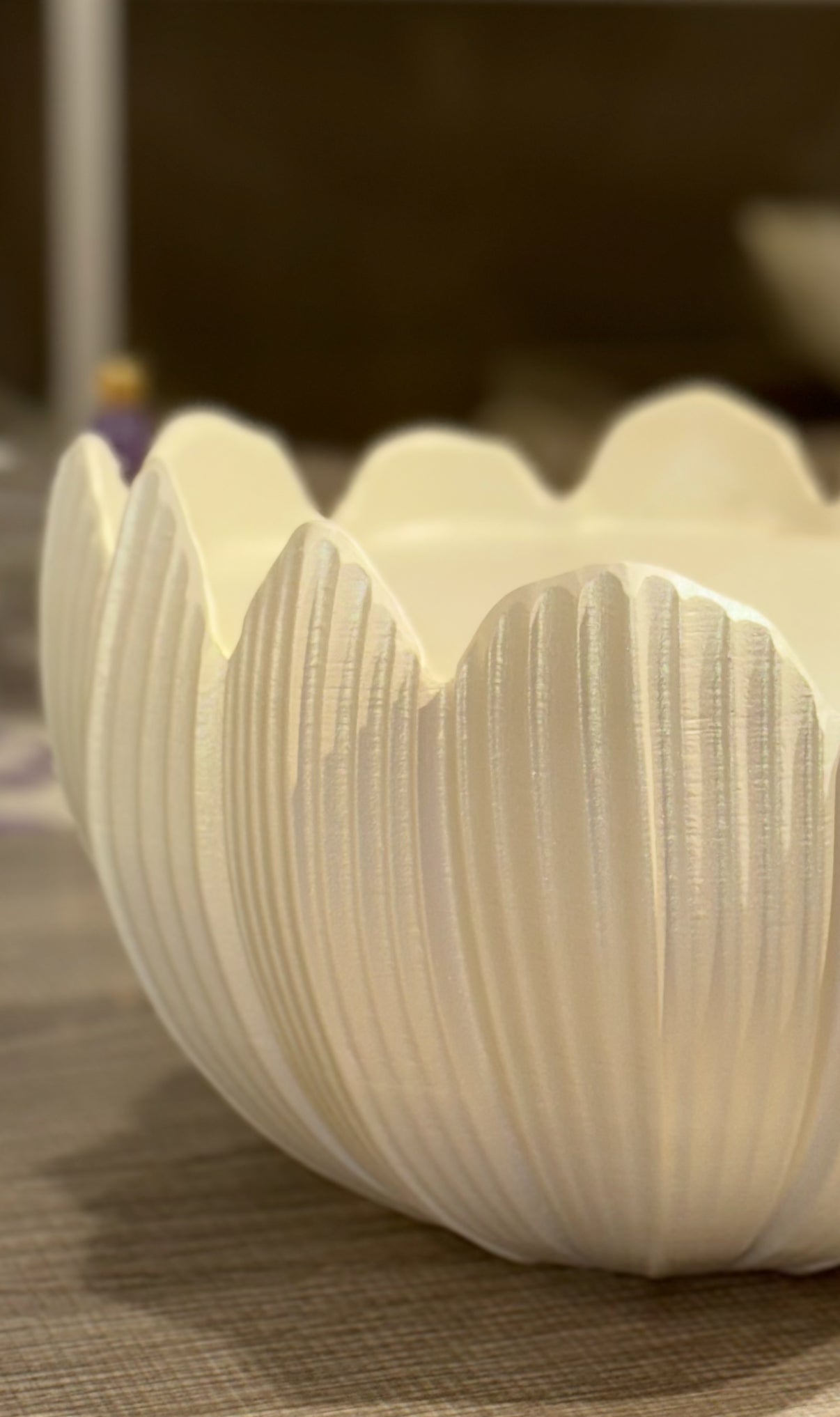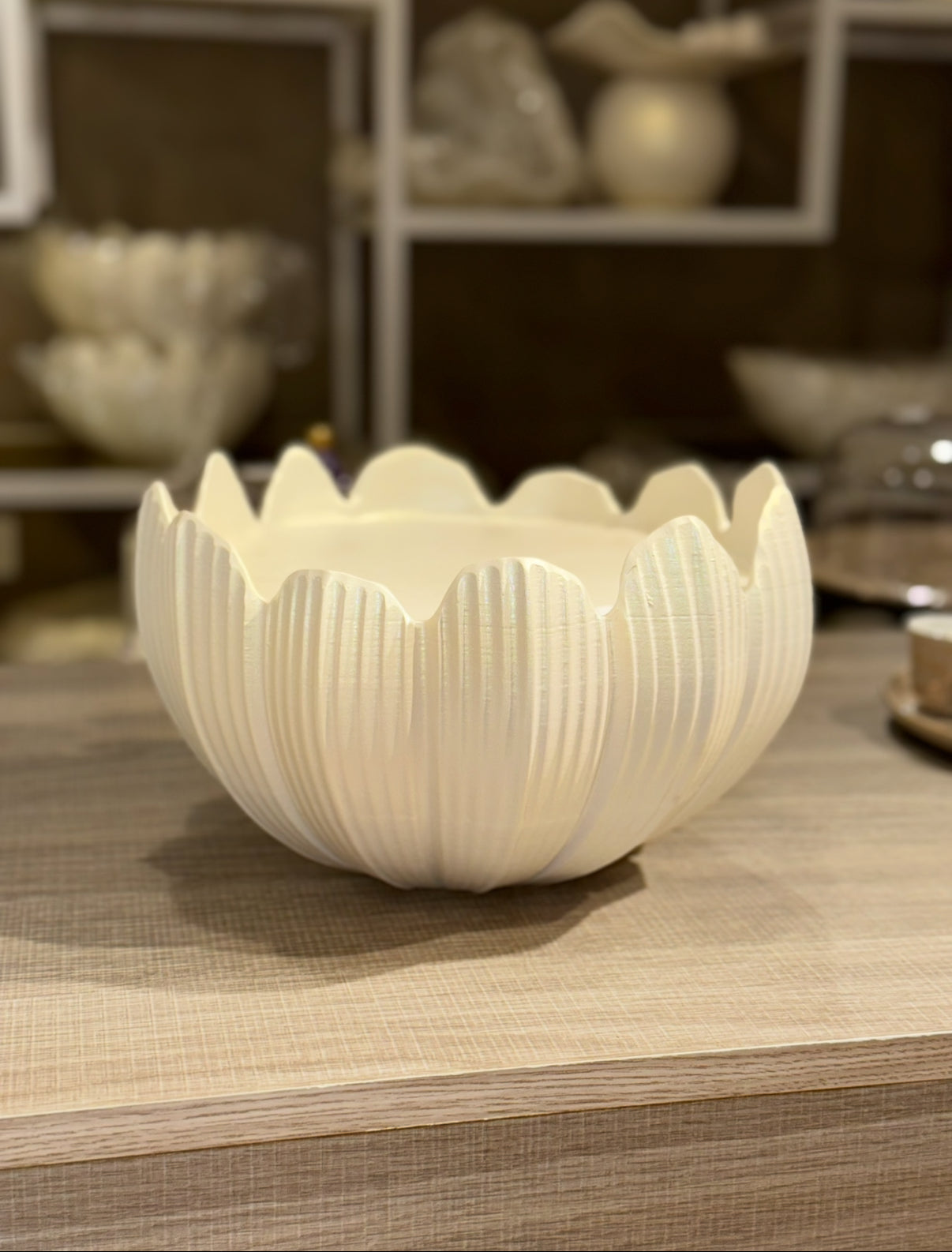 وعاء خزفي باللون الأبيض اللؤلؤي بتصميم زهرة اللوتس