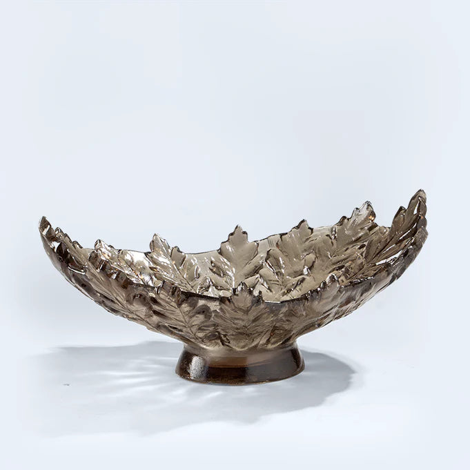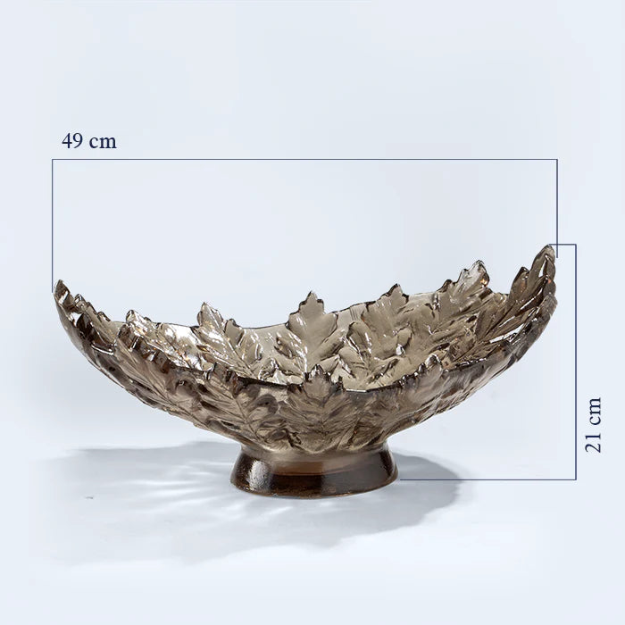 بلونها الدخاني المميز تأتي هذه الصينية المصنوعة من الريزن على شكل أوراق الخريف لتضفي نوع من الفخامة والبهاء على طاولة التقديم الخاصة بكم