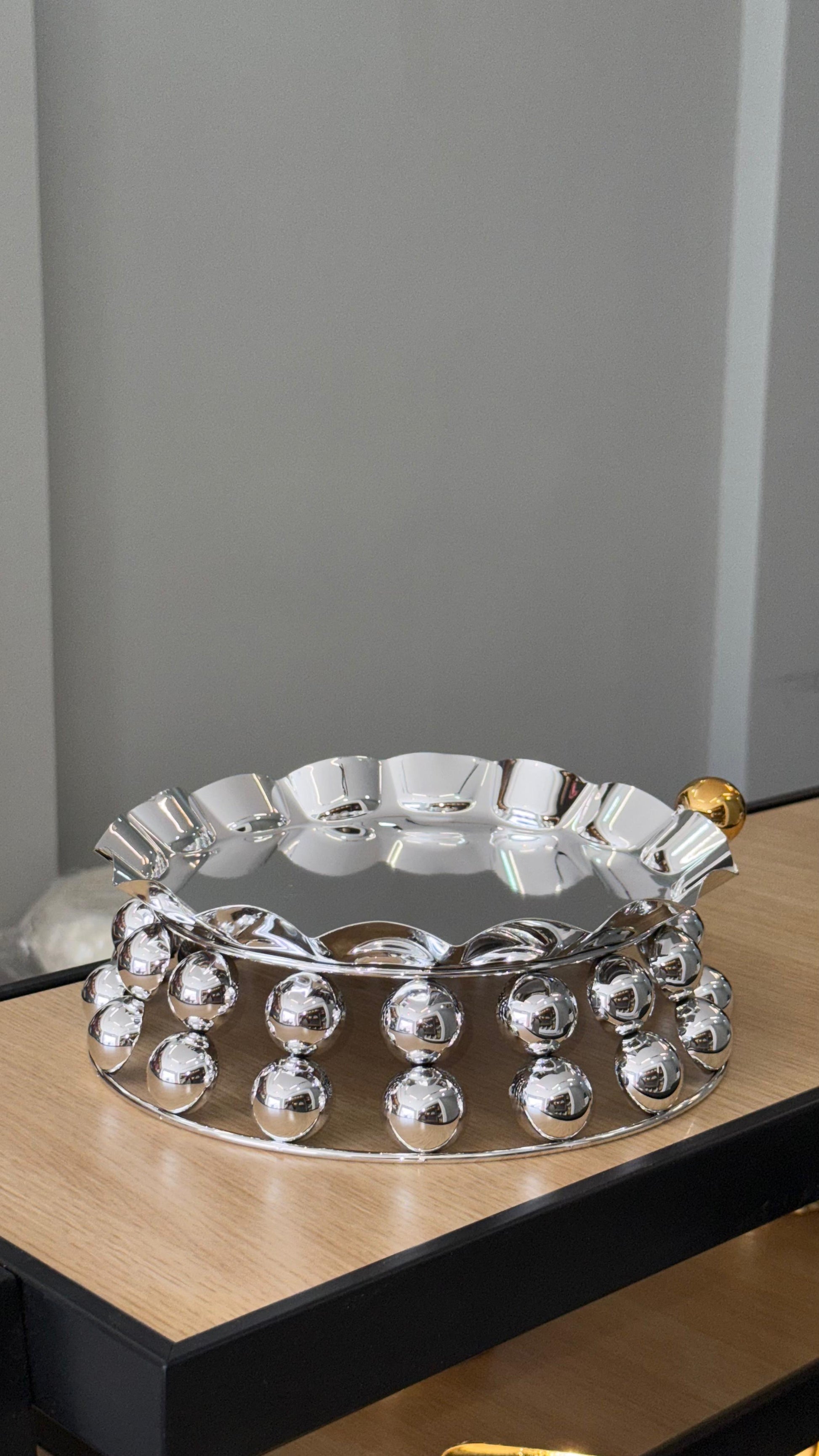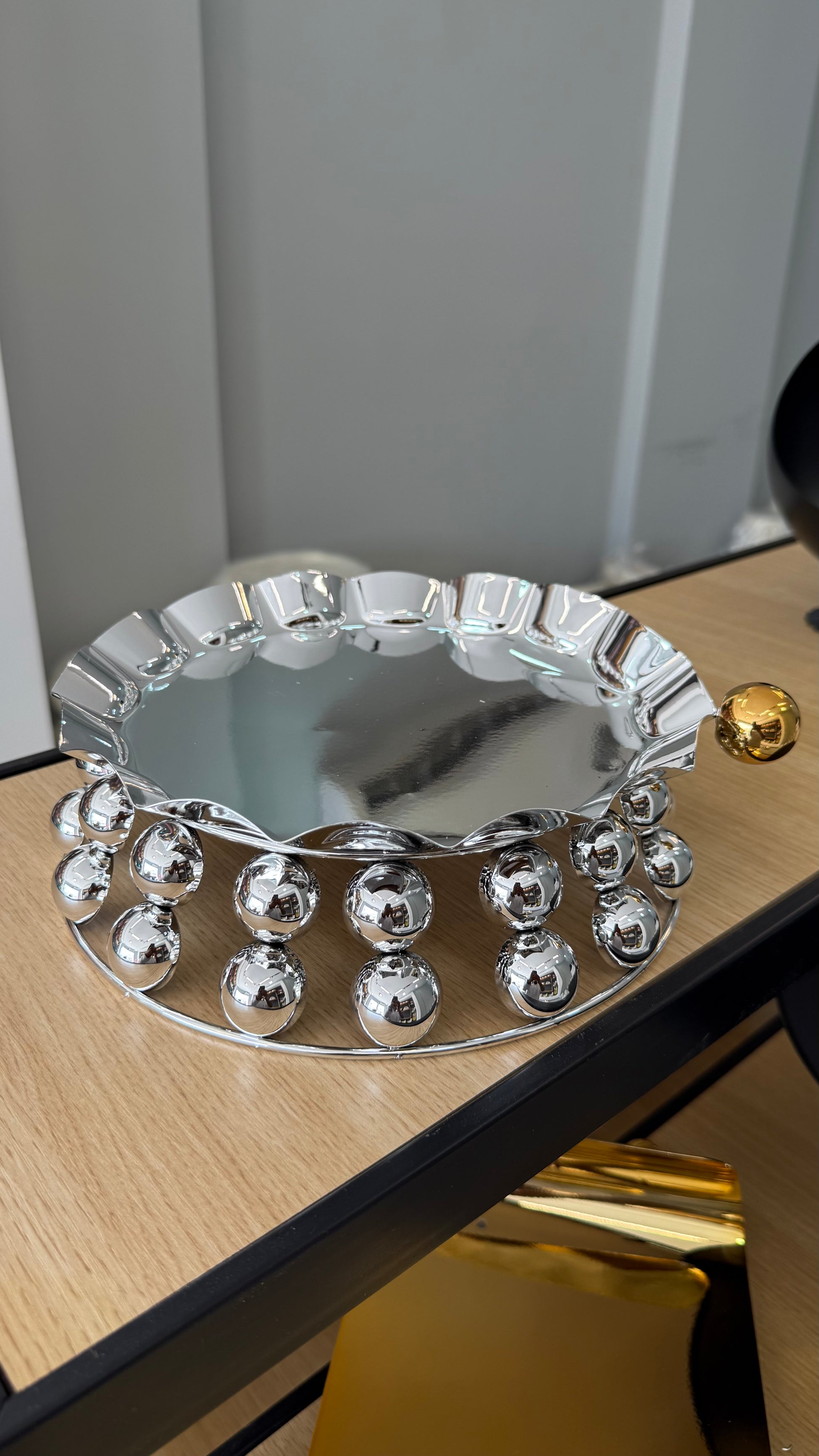 صحن تقديم مثالي للتمر والشوكولاتة بتصميم عصري انيق وجسم معدني مطلي بالكروم اللامع