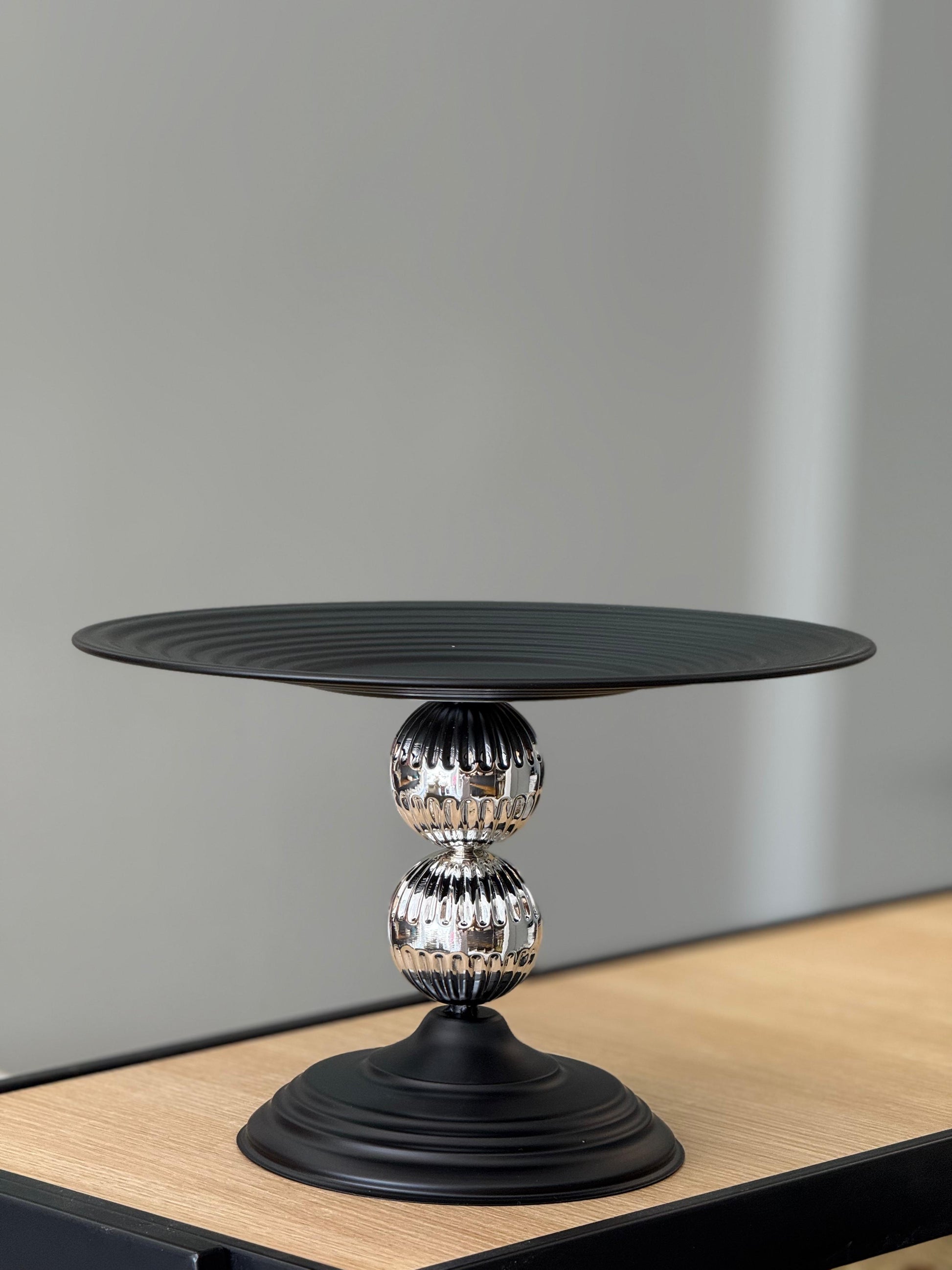 ستاند تقديم للكيك والحلويات مصنوع من المعدن لون أسود مطفي وقاعدة فضي لامع